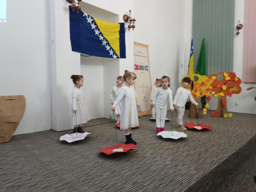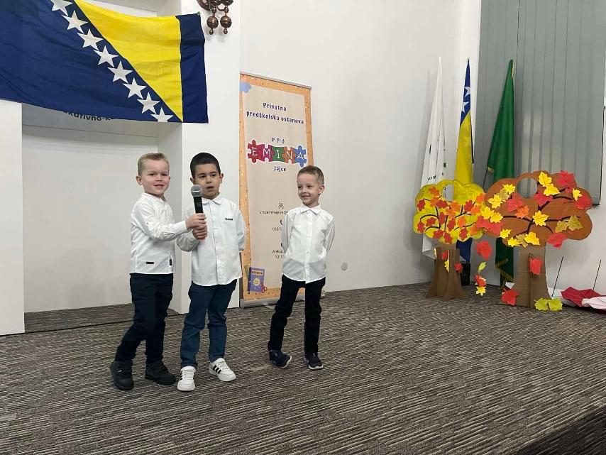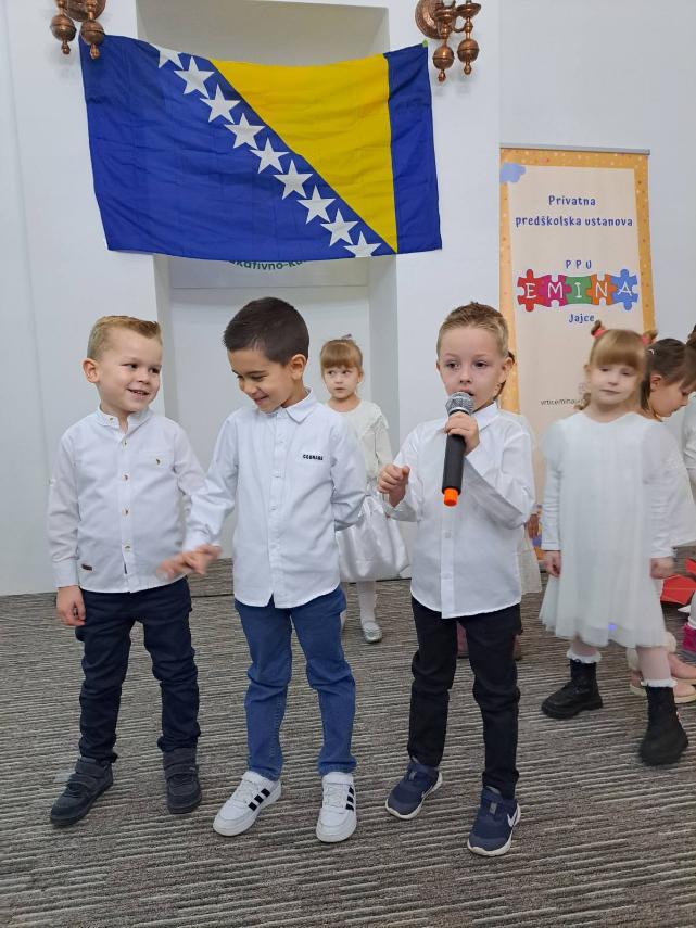 Pjesmom, plesom, igrokazima i recitacijama polaznici ,,PPU Emina” pokazali su svoju ljubav prema Domovini, šta sve znaju o jeseni ali i ukazali na prava koja svako dijete mora uživati. Sa željom i nadom da svako dijete odrasta sretno i slobodno u Domovini koju voli direktorica ,,PPU Emina,, čestitala je Dan državnosti BiH. Svojim trudom i zalaganjem nastavit ćemo podizati svijest o bitnosti ranog odgoja i obrazovanja kako bi svako dijete u našoj zajednici odrastalo u sretnom i sigurnom okruženju.